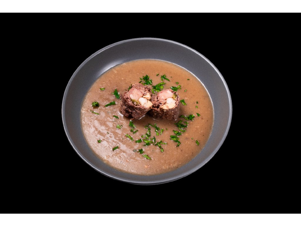 Tento španělský ptáček představuje delikatesu, která obohatí váš jídelníček. Závitek z měkkého hovězího plátku, potřeného voňavou hořčicí, je naplněn směsí uzené slaniny, vejce, salámu a křupavé okurky. Každé sousto přináší výjimečný zážitek, který si oblíbí nejen ti, kteří dodržují bezlepkovou dietu.
