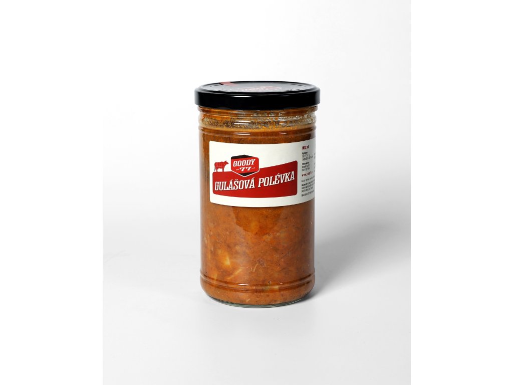 | Složení: | hovězí maso, brambory, masový vývar, smažená cibule, vepřové sádlo, hladká mouka, jedlá sůl, koření (majoránka, paprika, kmín, pepř, česnek) |