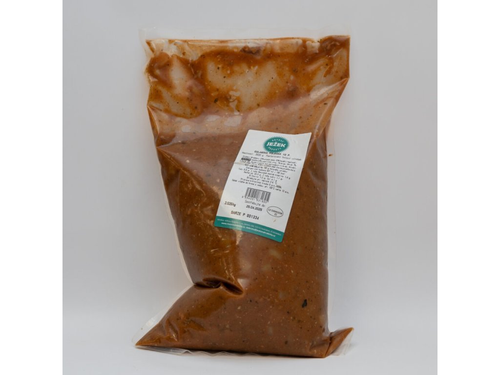 - Aromatické koření jako česnek, pepř černý, sladká paprika, majoránka a kmín - vytváří nezaměnitelnou chuťovou paletu.