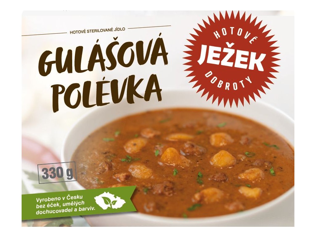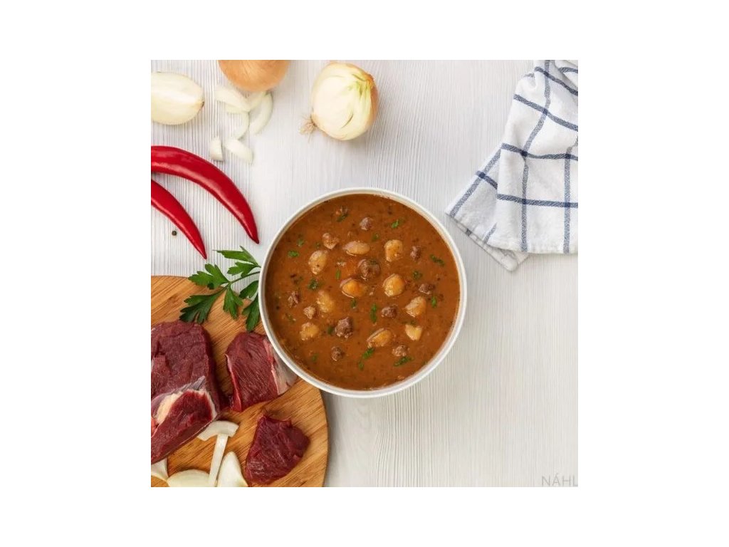 Způsob přípravy Složení hovězí vývar 48 %, brambory 19 %, cibule 12 %, hovězí krk 7 %, hladká mouka 7 %, sádlo, česnek, sůl, paprika sladká, majoránka, cukr, kmín, pepř Nutriční údaje na 100 g výrobku KCal 98,23 / kJ 410,62 Bílkoviny 3,38 g, sacharidy 10,58 g, z toho cukry 1,64 g, tuky 4,48 g, z toho nasycené mastné kyseliny 2,03 g, sůl 0,96 g Alergeny Mouka