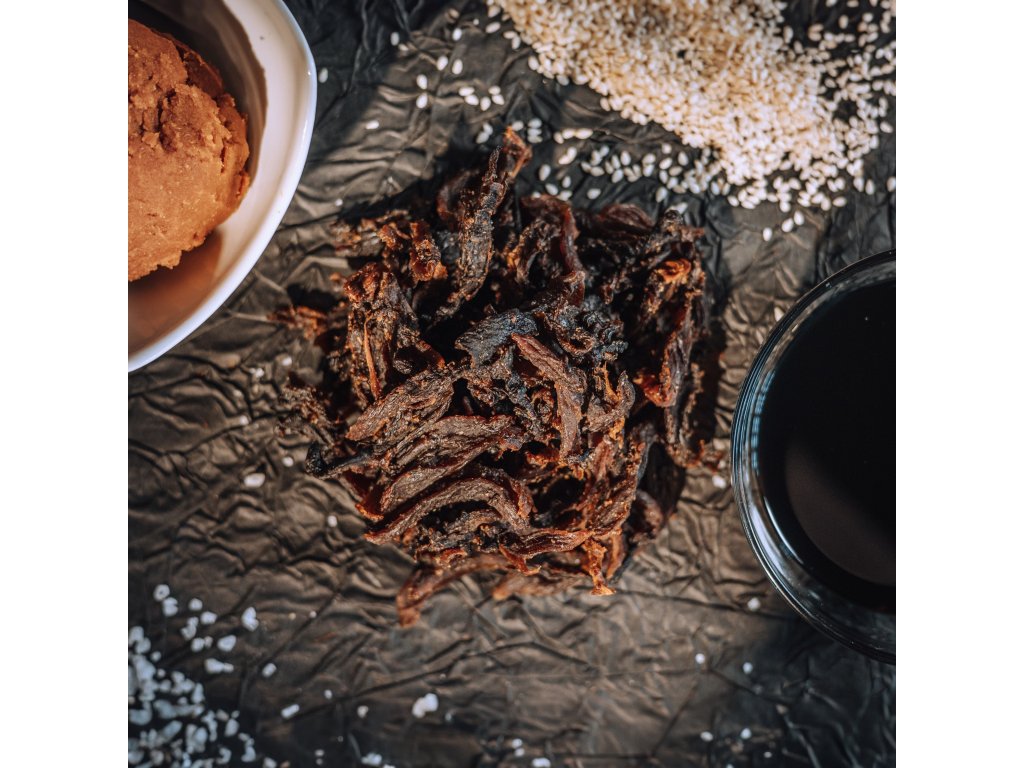 Tohle je česká hlíva ústřičná, ty nejvybranější ingredience a pečlivá ruční výroba. Jestli máš rád naše vepřový teriyaki nebo k němu naopak hledáš alternativu, jsi tu správně. Spojili jsme houbu, japonskou miso pastu, bílej sezam a trochu medu. Výsledkem je výborný veganský jerky s vyváženou chutí, perfektním složením a nutričníma hodnotama. Všechny ingredience jsme navíc důsledně vybrali ve vegan variantě, takže i konečnej produkt může být 100% VEGAN🌱