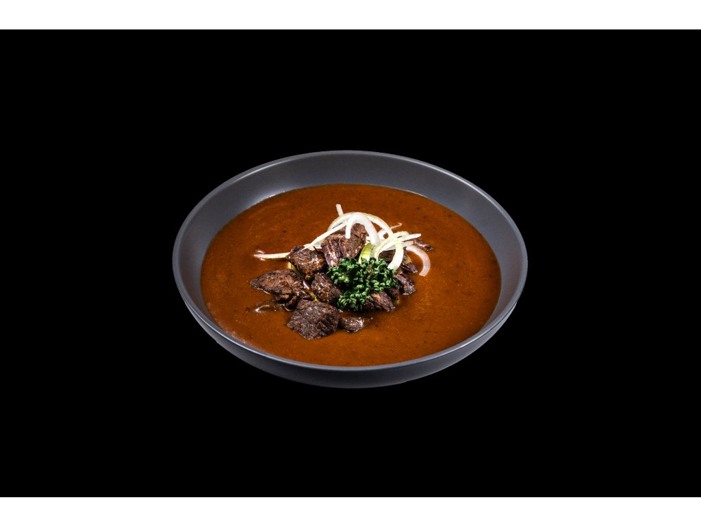 Kousky hovězího masa pomalu dušené na jemně nakrájené cibulce přinášejí chuť tradiční české kuchyně. Objevte náš lahodný guláš plný vůní a chutí.