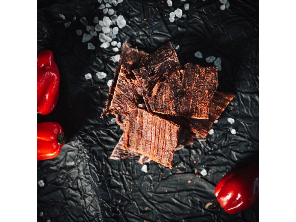 Pokud hledáte chuťový zážitek, který vás postaví na nohy, pak je hovězí jerky Moruga tím pravým pro vás. Toto sušené maso je určeno pro všechny milovníky pálivých chutí, kteří touží po dobrodružství na talíři. S každým kouskem se dostanete do světa, kde se spojuje intenzivní pálivost a jemné sladkost medu. Díky směsi koření a kvalitnímu českému hovězímu masu si můžete vychutnat zážitek, který je nejen silný, ale i lahodný.