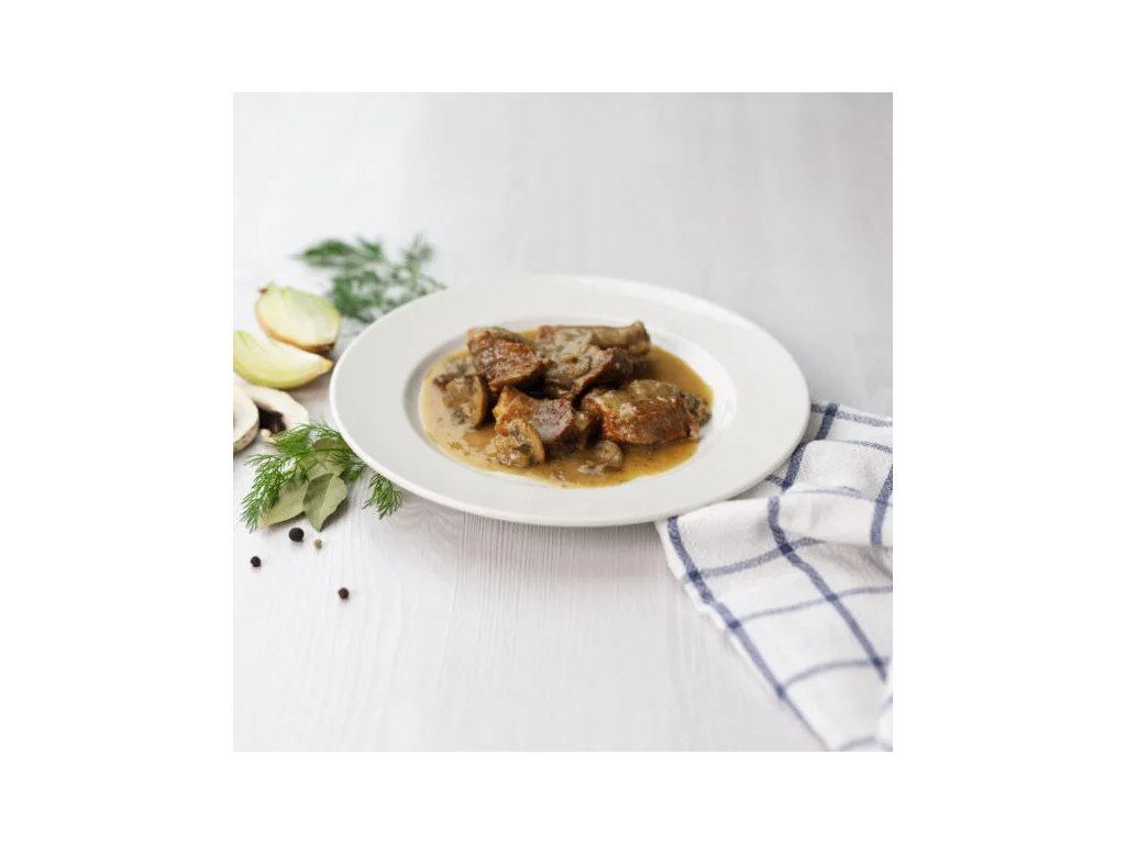 - Vyvážené složení: Složení zahrnuje kvalitní ingredience, jako jsou hovězí vývar a smetana, které dodávají jídlu krémovou texturu.