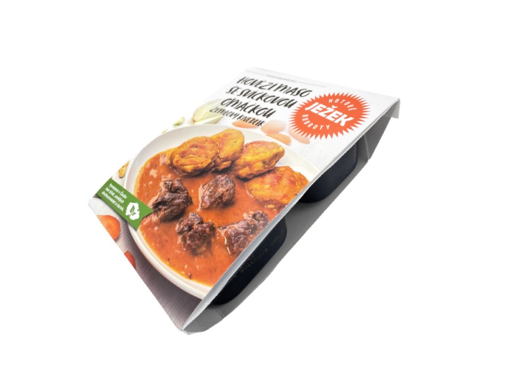 Způsob přípravy Složení Žemlový knedlík 34 %, hovězí vývar 16 %, hovězí ořech 16 %, směs pod svíčkovou 16 %, cibule, smetana, sádlo, cukr, hladká mouka, slanina, plnotučná hořčice, ocet, citron, sůl, divoké koření Nutriční údaje na 100 g výrobku KCal 155,08 / kJ 651,60 Bílkoviny 6,59 g. sacharidy 19,42 g, z toho cukry 4,70 g, tuky 5,82 g, z toho nasycené mastné kyseliny 2,61 g, sůl 0,74 g Alergeny Mouka, vejce, mléko, celer, hořčice