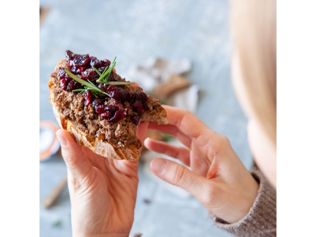 Tip na servírování: Podávejte při pokojové teplotě a před konzumací promíchejte, aby se chutě dokonale propojily. Skvěle chutná s čerstvým kváskovým chlebem, opečenou bagetou nebo rustikálním toustem. Pro vyváženou kombinaci doplňte paštiku o jemné plátky tvrdého sýra, hrst pečených vlašských ořechů nebo lžičku brusinkového džemu.