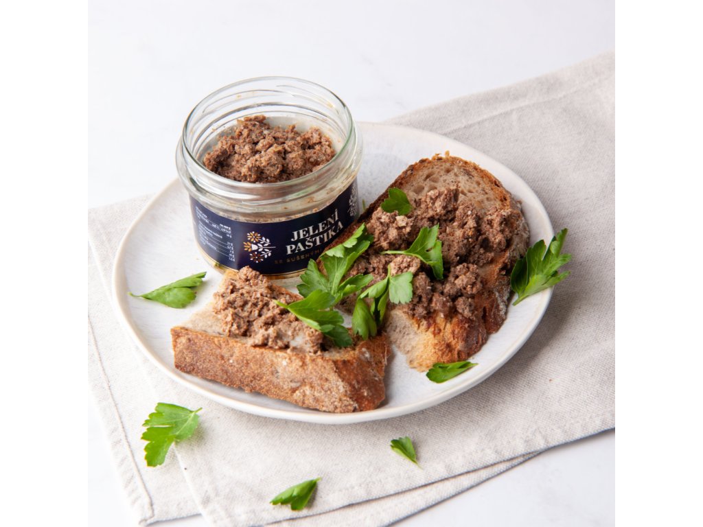 - Jelení maso (minimálně 55 %) je základem paštiky, které dodává paštice výraznou chuť.