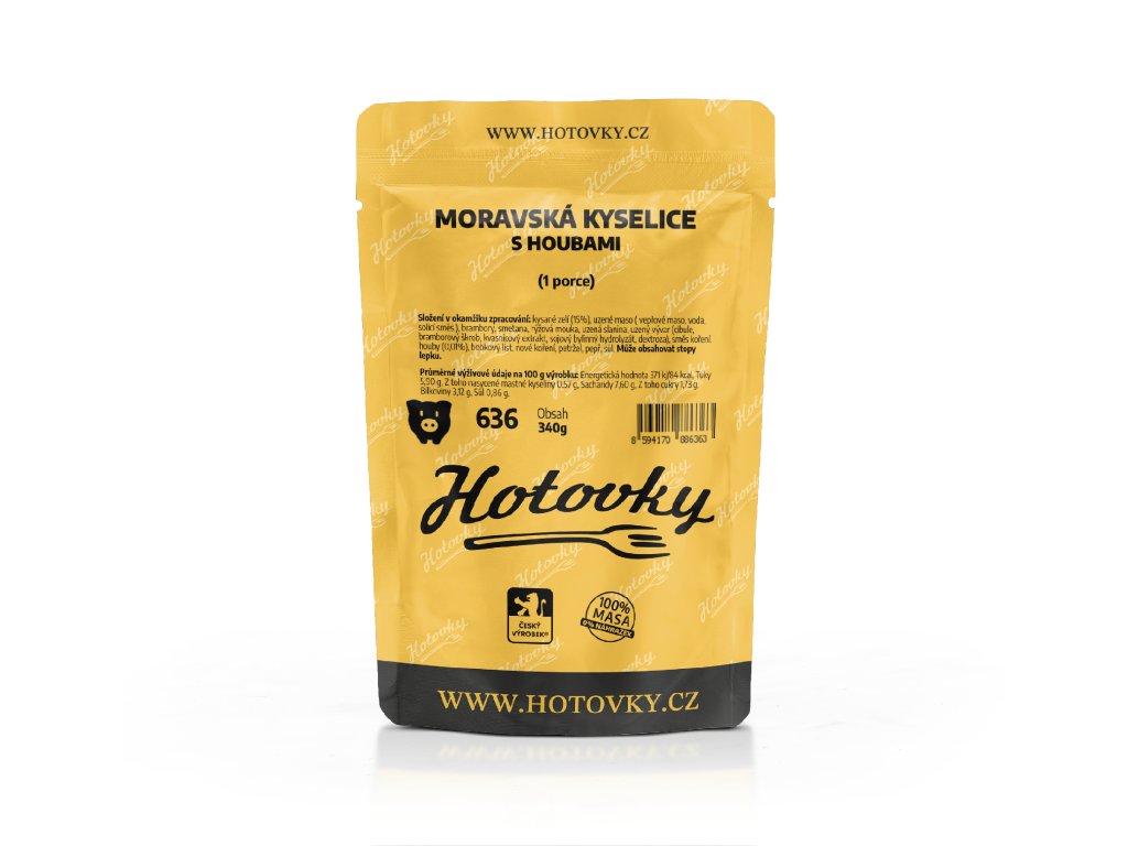 - Složení: kysané zelí (15%), uzené maso (vepřové maso, voda, solící směs), brambory, smetana, rýžová mouka, uzená slanina, uzený vývar (cibule, bramborový škrob, kvasnicový extrakt, sojový bylinný hydrolyzát, dextroza), směs koření, houby (0,01%), bobkový list, nové koření, petržel, pepř, sůl.