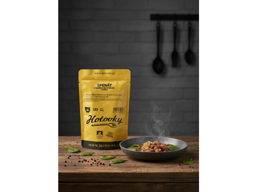 Nahlédněte do světa chutí s naším šťavnatým vepřovým masem a čerstvým špenátem, které tvoří ideální kombinaci pro rychlý a chutný oběd.