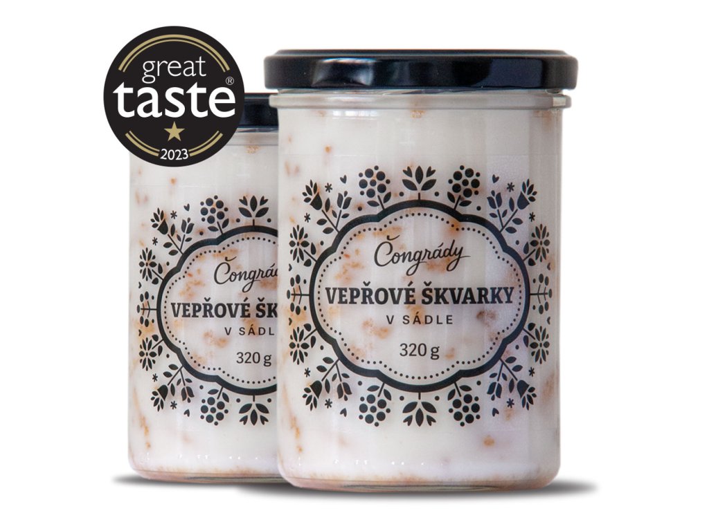 Naše vepřové škvarky získaly v roce 2023 prestižní ocenění Great Taste Awards, což potvrzuje jejich výjimečnou kvalitu.