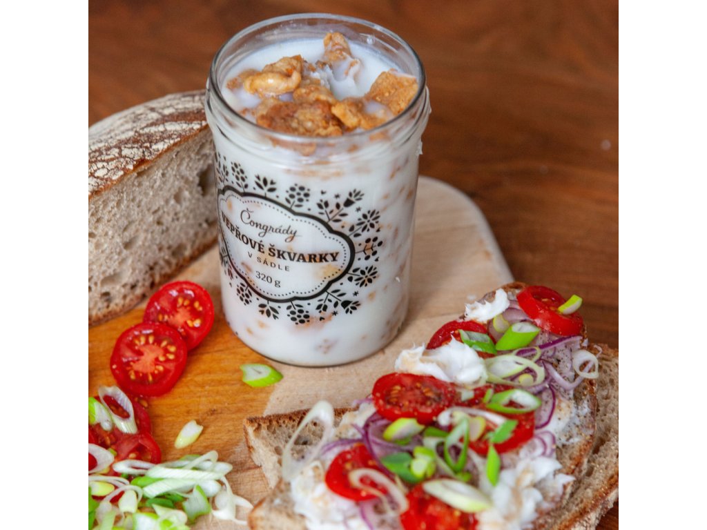 Dokonalá kombinace křupavých, dozlatova usmažených vepřových škvarků a jemného škvařeného sádla. Tradiční pochoutka s nezaměnitelnou chutí, která se skvěle hodí na čerstvý chléb nebo pro přípravu škvarkové pomazánky.